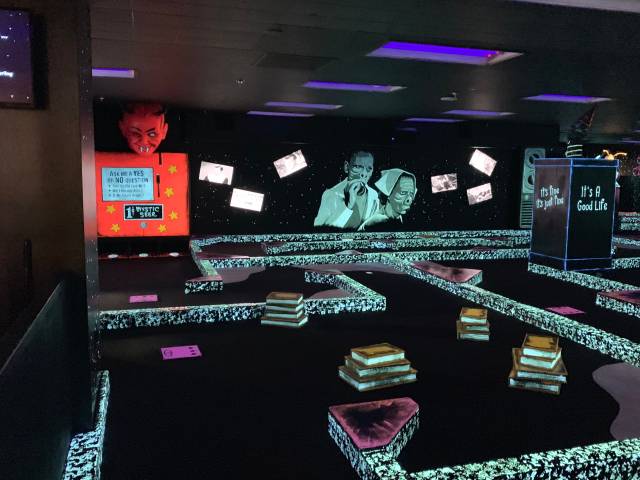 It’s a glow in the dark 18-hole course with suitably spooky props and obstacles. It’s not the most challenging of courses but good fun and worth a round for a wager between friends. I always play for ‘loser buys the cocktails’!
