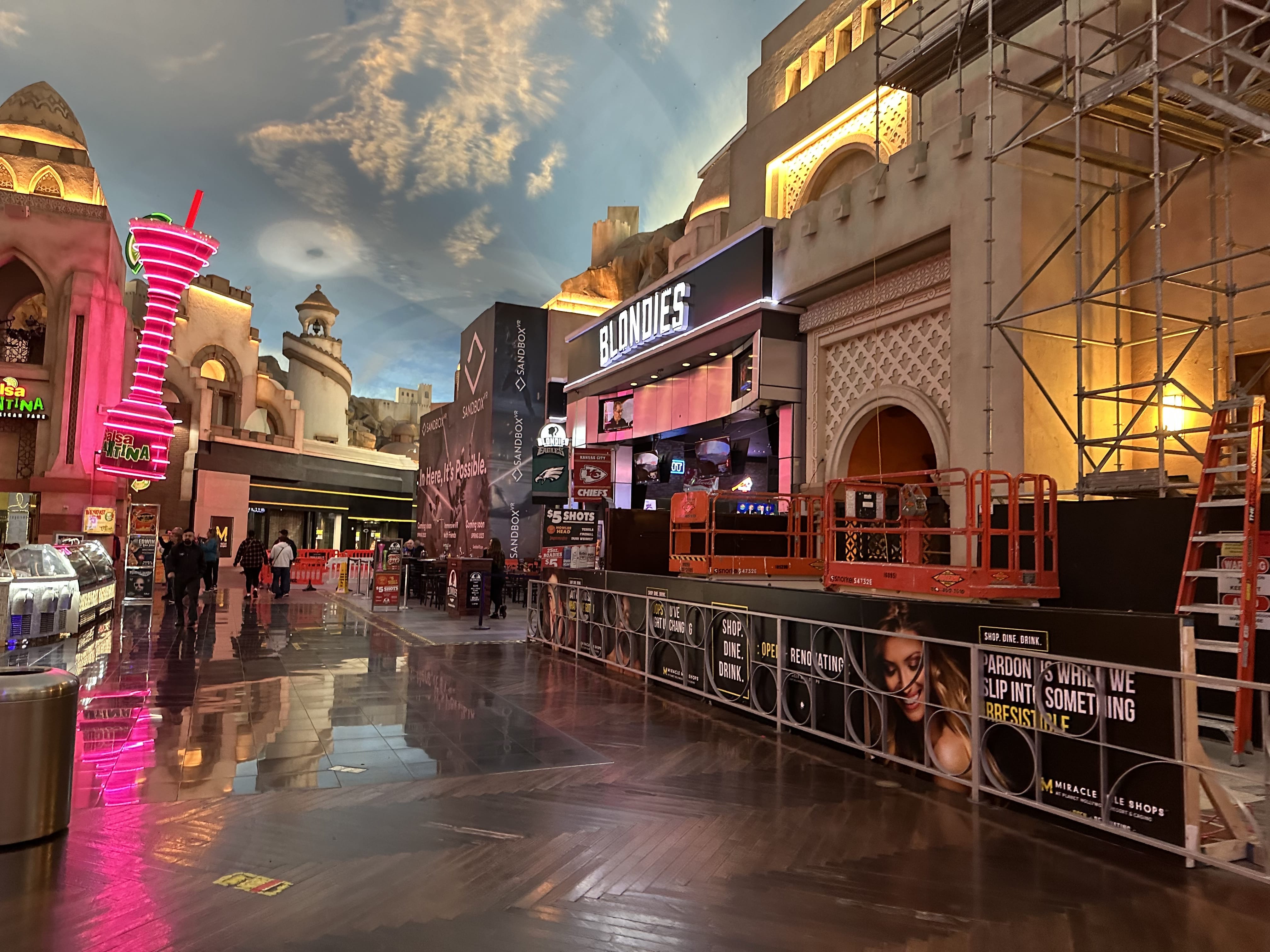 You’ll find Blondies in the Miracle Mile Shops in Planet Hollywood. Follow the shopping mall right around to the back, and you’ll find it opposite the V Theater.