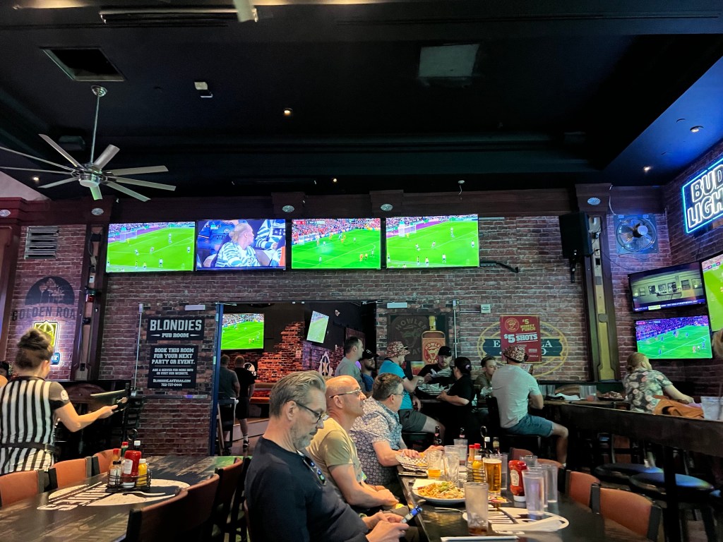 However, Blondies definitely aims to cater for the Brits in Vegas looking to watch English football. They have lots of screens around the bar, including a giant on at the far end. They’ll have the sound on for some games and show multiple matches if they are on at the same time. You’ll definitely find some fellow fans in there.