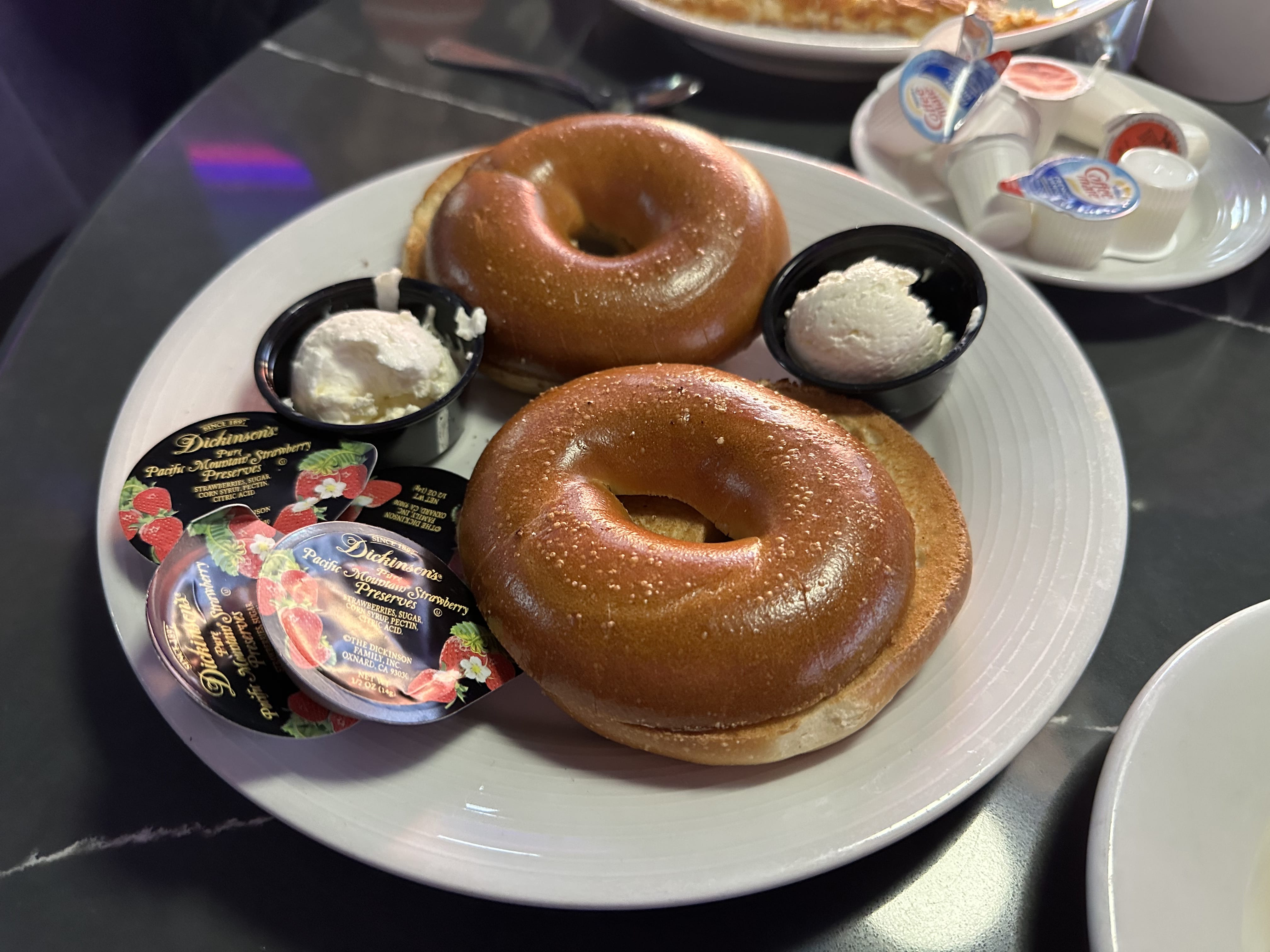 The menu is extensive so there is something for everyone. I went for the garden omelet. It was fresh, delicious and served with a side of the house hash browns. With most of the breakfasts you also get a choice of toast, bagel or an English, blueberry or lemon and cranberry muffin. I went bagel and cream cheese, toasted to perfection.