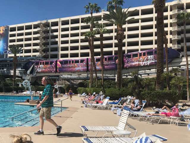 The monorail passing by the Blu Pool at the Horseshoe (March 2018)