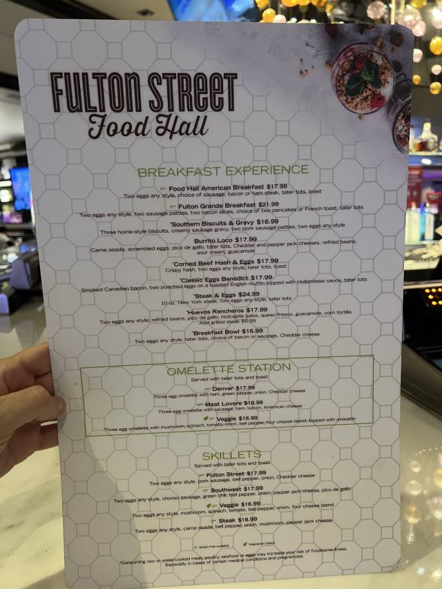 In fact, I’ve had the breakfast there several times when staying at Harrah’s. The food has always been fresh and in decent-sized portions. The menu has been reduced, but there’s till plenty to choose from.