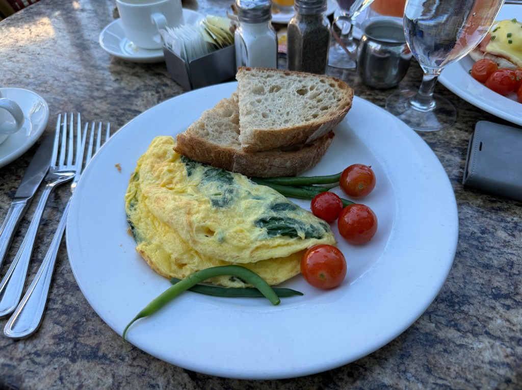 I went for the spinach and goat cheese omelette, which was very nice. It comes with green beans rather than potatoes, so it a bit of a lighter option than most omelettes you’ll find on other breakfast menus.