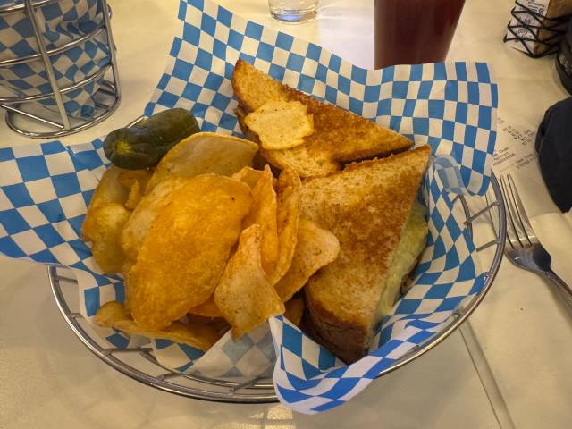 The sandwiches were delicious and all served with house-made chips (crisps to us Brits) and a dill pickle. There are plenty of veggie options, I opted for a grilled cheese sandwich with added braised mushrooms. They also do gluten free bread, if you need it.