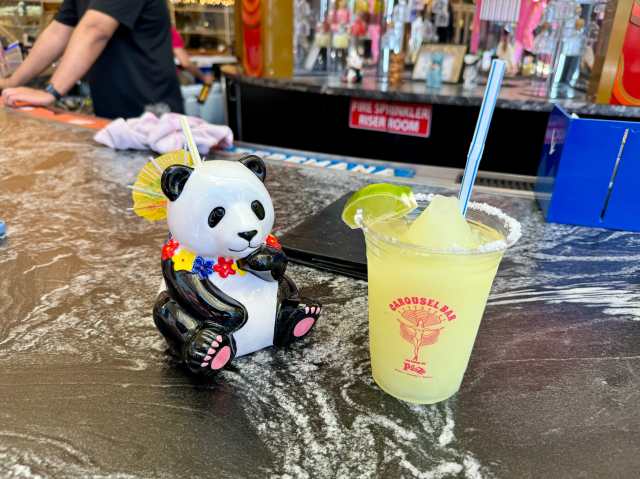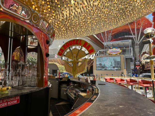The Carousel Bar is located at the front of the Plaza hotel in Downtown Las Vegas. It’s a great location under the twinkling lights of the entrance to the hotel. It’s right across the street from the Fremont Street canopy and a great people watching spot.